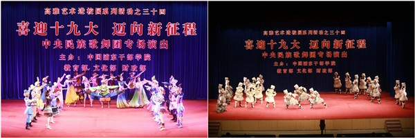 ????? 10月11日晚,在党的第十九次全国代表大会即将召开之际,我院与中央民族歌舞团共同举办了第34场高雅艺术进校园活动——“喜迎十九大 迈向新征程”专场演出。