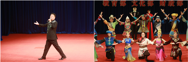 ????? 演出以欢快热烈的《快乐舞步》拉开帷幕。活泼有趣的《打歌打舞》、优雅唯美的《邵多丽》、朝气蓬勃的《青春之歌》赢得了现场观众阵阵掌声。马头琴独奏《万马奔腾》仿佛将观众带到辽阔草原之上,器乐二重奏《卷珠帘》让人耳目一新。歌唱节目《节日欢歌》《不忘初心》《追寻》《中华民族一家亲》等层层递进,引起大家感情上的共鸣。在“中华民族一家亲”“不忘初心,继续前进,万水千山,最美中国道路”的嘹亮歌声中,现场氛围达到高潮。