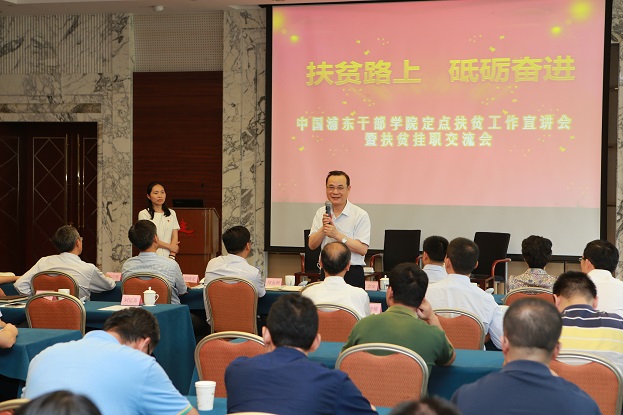 副院长、定点扶贫工作领导小组副组长熊云指出,学院两年多来的扶贫成绩来之不易,是中央正确领导、全院共同努力和一线扶贫挂职干部埋头苦干的结果。学院要深入学习贯彻习近平总书记扶贫思想,学习领会中央和国家机关定点扶贫工作推进会精神,进一步增强扶贫工作的责任感和使命感。希望全院教职工积极响应、群策群力、再接再厉,把握扶贫挂职的新机遇,开拓精准帮扶的新渠道,夺取帮扶工作的新胜利。
