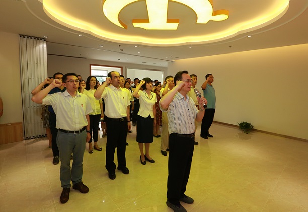 最后,大家来到刚刚建成的川沙党建服务中心,与相关负责同志交流研讨新时期基层党建工作。在王金定的带领下,三个支部的全体党员齐唱国歌,观看“不忘初心、牢记使命”专题片,大家庄严地举起右手,重温入党誓词,心情久久不能平静,活动在国际歌声中圆满结束。